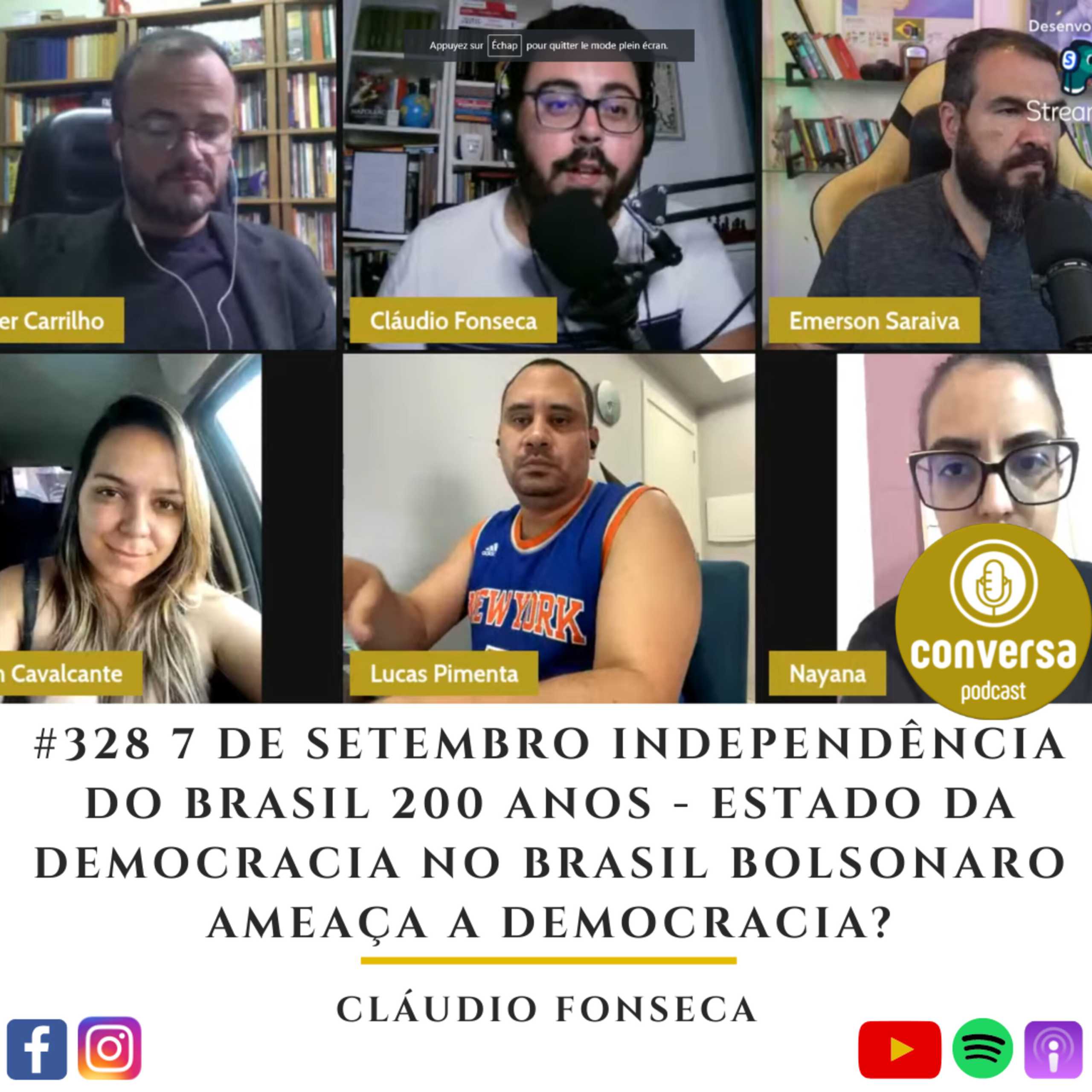 #328 7 de Setembro Independência do Brasil 200 anos – Estado da Democracia no Brasil Bolsonaro Ameaça a Democracia?