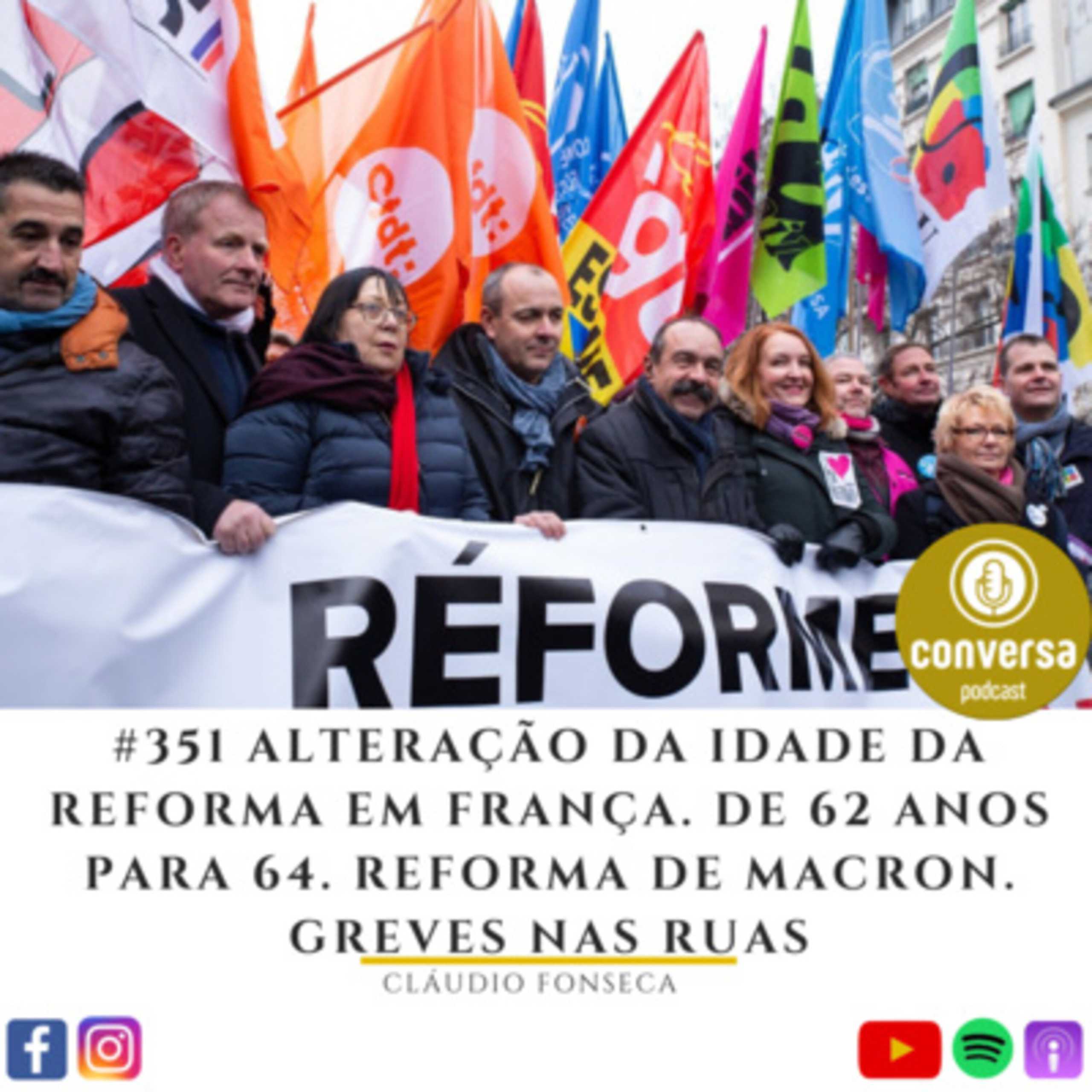 Vimos imagens das ruas de Paris com lixo, pois os próprios trabalhadores do lixo estão em greve, por a sua idade da reforma, que vai mudar em Setembro passar de 57 anos para 59 anos, qual a idade geral vai passar dos 62 para os 64, quando em Portugal a idade da reforma é aos 65 anos.