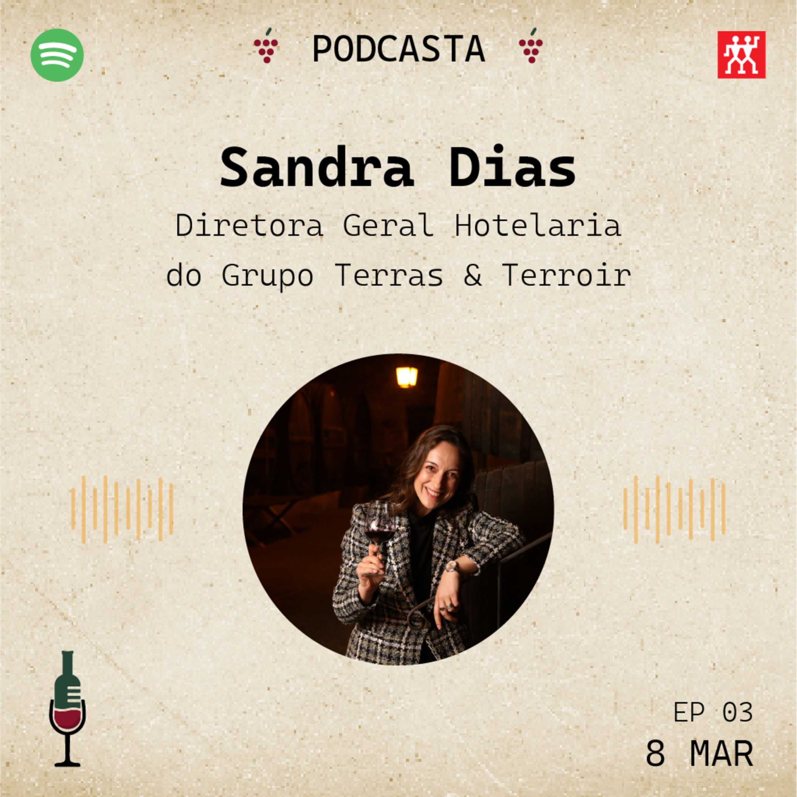 Sandra Dias desempenha atualmente funções de Diretora Geral de Hotelaria no Douro do grupo Terras & Terroir. Grupo empresarial que inclui no Douro, as Vila Marim Country Houses em Mesão Frio, o Hotel Folgosa Douro em Armamar, a Garrafeira Wine & Friends na Régua e a prestigiada Quinta da Pacheca, propriedade focada em Enoturismo, sita em Lamego, cidade onde nasceu e concluiu o ensino secundário, localizada em pleno coração da Região Demarcada do Douro, onde orgulhosamente vive e pela qual nutre uma paixão imensurável desde sempre.